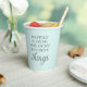 Mint green cup with grey writing that says, "Happily Sipping on One of My Favourite Things." Perfect for a "Favourite Things" party.