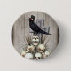 Sir Raven Skully a 3D digital art of a beautiful mystical raven bird wearing a gothic style top hat, adorned with a skull, but of course… he is perched on top of a pile of skulls, with a mysterious tombstone behind. Great raven lover gift!