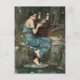 Vintage John William Waterhouse painting of Siren holding her harp and looking into a pool of water.