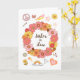 This unusual heartfelt sister in law Mother's Day greeting card is full of 1960s retro symbols: a pretty central floral wreath surrounded by a peace sign, hearts, a dove, etc., all in soothing hues of pink, yellow, brown, and orange. The inside text says, "Wishing you all the peace and love in the world on this Mother's Day and always."