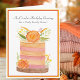 This watercolor October birthday cake is adorned in soft pinks and warm golds, beautifully decorated with vibrant marigolds the flower of the month alongside delicate accents of goldenrods, scabiosa pods, and fresh greenery on a rustic wood cake plate. A lovely design to celebrate a cherished Sister’s special day.