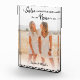 This Elegant Photo block will make a wonderful present for any sister or sisters this christmas, birthday or other special occassion. The modern way to display your most precious photographs this one features, a photo with a quote that reads 'A sister is a little bit of childhood that can never be lost.' personalised with their names at the bottom over a white faded overlay.