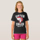 Thought the design was cute. After one wash with cold water on medium dry the decal flaked off and the shirt looks ornate. The tag says heavy duty cotton but the shirt doesn’t hold up. I would like a refund or my shirt remade. Horrible printing! Sadly the design did not stay on! Please refund me as for this price getting an unusable shirt is very disappointing.