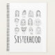 Sisterhood feminism doodle illustration notebook with diverse women's portraits in outline line art. Black and white hand drawn feministic notebook with ink pen art. Unique feminism linear drawing notebook with female cartoon characters. This equality notebook is unique and artistic and is a perfect addition to your gift for her: friend, girlfriend, sister, mum, aunt, cousin and niece. Get a unique feminism equality notebook today!