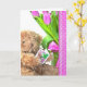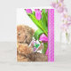 Teddy bear with pink tulip bouquet and polka dot border and lace for Sister's Birthday.