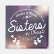 Bold and elegant Christian emblem design with words, "Sisters in Christ" in script with banner design elements. Top centre of emblem has area for your custom names (friends names) in white semi-circle. Bottom semi-circle (centred below Sisters in Christ typography) has words, "ONE IN THE SPIRIT" but can be customised to fit your needs. Great gift for any Christian sister. Background is dramatic Bokeh with light effects.
