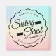 Bold and elegant Christian emblem design with words, "Sisters in Christ" in script with banner design elements. Top centre of emblem has words, "Established by grace." Bottom centre of design emblem contains words, "rooted and grounded in Jesus." Emblem is black on beautiful pastel background. Area for your custom names (friends names) under the word, "Christ." Great gift for any Christian sister.