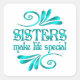 Show that special Sister how much you care with this pretty design with fun flourishes and the words - Sisters Make Life Special.
