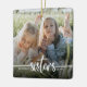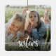 Modern photo ornament featuring single photo inside white frame and typography script ''sisters'' in trendy handwritten lettering. Personalise further with names.