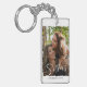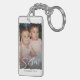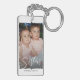 Modern photo key chain featuring 2 photos inside white frame and typography script ''sisters'' in trendy handwritten lettering. Personalize further with a name.
