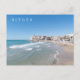 A beautiful view of the beach in the town of Sitges in Spain printed on a postcard.