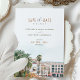 Announce your destination wedding in style with this beautifully designed "Save the Date" card, featuring a charming watercolor illustration of Sitges, Spain. This card perfectly captures the essence of a romantic Mediterranean setting, with vibrant palm trees and quaint Spanish architecture. The soft colour palette and elegant typography make this card ideal for couples planning a destination wedding or seeking a timeless, sophisticated design. Your guests will be enchanted by this preview of your wedding day in the picturesque coastal town of Sitges.