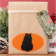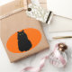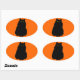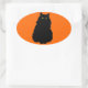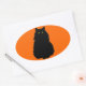 Sitting Black Cat Silhouette on Orange Oval Sticker