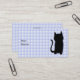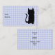 Sitting Black Cat Silhouette. On pale blue check. Business Card