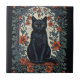 Sitting Black Cat Vintage Floral Tile