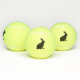 These tennis balls have a side profile of a sitting bunny rabbit done in black silhouette.