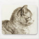 Realistic detailed black and white sepia pencil drawing of a sitting cat by Dutch artist Jean Bernard.