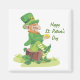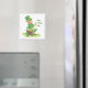 Fun Irish magnet features a Leprechaun sitting on a stump with Shamrocks at his feet. He is dressed in green and is clutching a handful of gold coins.