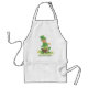 Fun Irish apron features a Leprechaun sitting on a stump with Shamrocks at his feet. He is dressed in green and is clutching a handful of gold coins.