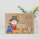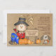 An adorable, fall-theme invitation featuring a smiling scarecrow sitting next to a sign with your wording. There are pumpkins scattered about and a cute puppy. A perfect invitation for any fall celebration.