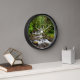 The size of the clock is dramatic and the abstract alcohol ink design is soothing and intricate at the same time. I chose the black frame that adds pop to the blue and gold design. The gold printing would be better in a slightly darker or larger font. I love it and I’m looking for just the right place in ny new apartment. I would recommend this clock for a personal gift or a present. I feel that the quality is excellent for the money! I’m a bit of a clock nut so I’m pretty particular about my purchases. The clock is larger in diameter than many if the clocks I have, so it stands out very well. I think a slightly darker printing color and a moderately larger size would best suit a professional decor or add more impact in a work place item.