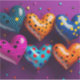 Glossy hearts with triangular bits of confetti