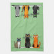 Six cat kitchen towel, block print tea towel
