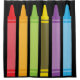 Six colourful crayons with a black background put onto this shower curtain.