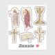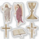 A set of six cristian designs, the graal, Holy Bible, two direrente croses an angel and Jesus.