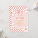 Six is a Vibe Retro Check Pink Daisy Invitation