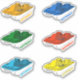 Add six different names or six of the same name to these pedal boat die cut stickers. Each sticker features an illustration of a brightly coloured pedal boat with a name below in a coordinating colour.