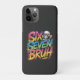 This vibrant, retro-style design features the phrase "SIX SEVEN BRUH" in bold, neon colors with a cool skeleton wearing pink sunglasses. It has a fun, 80s/90s aesthetic, often associated with memes, humor, and a playful attitude. The dynamic typography and bright palette make it perfect for apparel or social media.