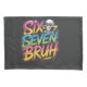 This vibrant, retro-style design features the phrase "SIX SEVEN BRUH" in bold, neon colors with a cool skeleton wearing pink sunglasses. It has a fun, 80s/90s aesthetic, often associated with memes, humor, and a playful attitude. The dynamic typography and bright palette make it perfect for apparel or social media.