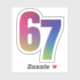 Six seven. 6 7. It's the saying that won't quit. Kids find it hilarious. Teens and tweens and even little ones have gotten on board with this trend that means nothing. So now you can buy a sticker for it. It's the six seven sticker. Makes a great gag gift or stocking stuffer. Or get a 6 7 sticker for yourself and drive your middle school kids crazy. Part of a collection of kid designs by Lea Delaveris Design.