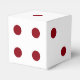 Six-sided die with dots on the sides of the cube to indicate the numbers for the sides.