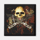 A nod to popular western or gunfighter video games such as Red Dead Redemption and GUN, this design features a skull sans lower jaw over two crossed western style revolvers. Background is an urban or grunge theme.