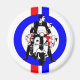 Black and white hand drawn sixties scooter rider on a red and blue mod target and stripes design. Great gift for any scooter boy or girl