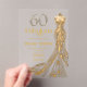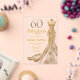 Elegant Sixty and Fabulous Gold Dress 60th Birthday Clear Acrylic Invitation that you can personalize and send out for your sixtieth birthday party celebration. This invitation features a gold and diamond-studded 60 and a sparkling gold gown. The words Fabulous and the name are set using trending bold font typography.