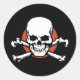 Original pirate skull and crossbones design; sinister but not overtly demonic, nice details, red circle backing. Suitable for team/group emblem of logo. T-shirts, sweats, prints, gifts.
