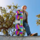You won't want to bail on this super cool skateboard deck with a cool mirrored design of a woman with rainbow hair , against a TV static style background. This item includes deck only. Decks in various sizes. Hardware not included. Artwork by Buttercup's Clothing and Collectables.