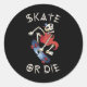 Skate or die Grim Reaper Skeleton Classic Round Sticker