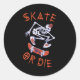 Skate or die Skeleton Skateboarder Classic Round Sticker