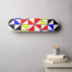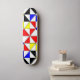 Skate table decorated with triangles in primary colors.