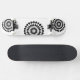 Skateboard shown in a black and white abstract graphic print.