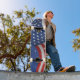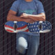 Skateboard shown in a patriotic USA Flag graphic print.