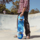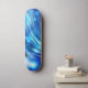 This quality made skateboard is shown with a abstract art pattern print in colours of blue.
