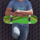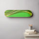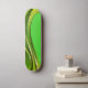 Skateboard shown in a lime green and green colours abstract graphic print.