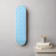 This quality made skateboard is shown in a solid colour of light blue and white with an artful scroll design print.