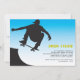 A silhouette skateboard figure against a blue to white background. Perfect skateboard invitation for any age. The card is easy to customise with your wording, font, font colour and choice of six paper types.