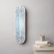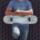 An impressionistic decorative artwork with two figures on either end of the skateboard.